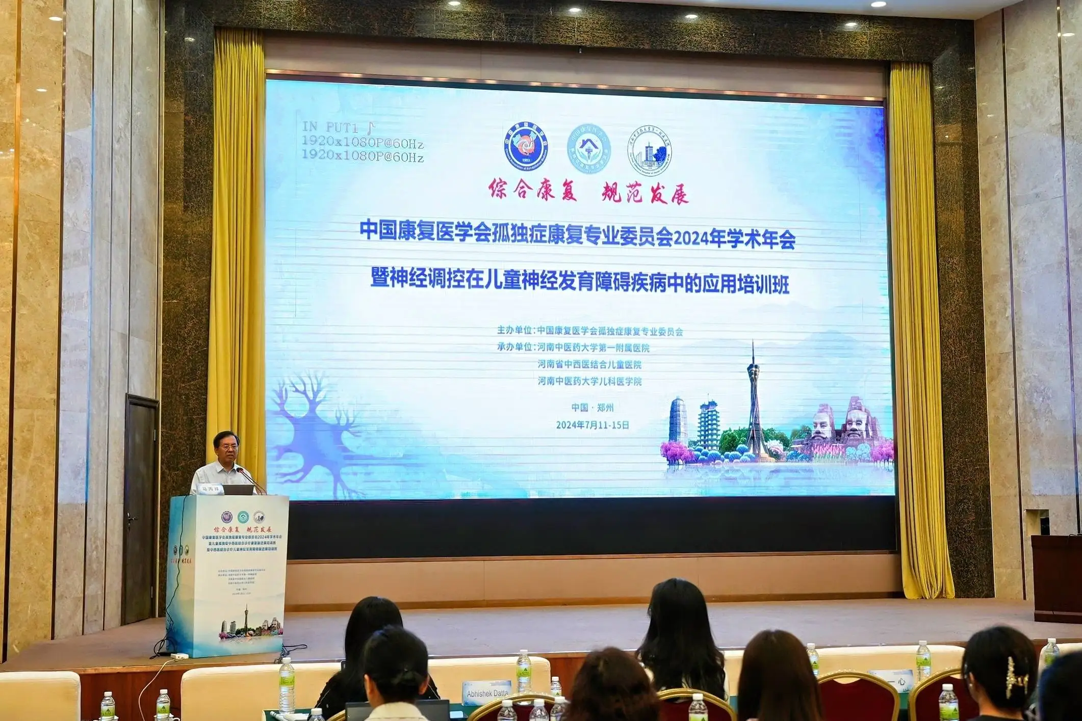 为交流国内外孤独症诊疗康复新进展,学习相关领域新理念、新知识、新技术,促进我国孤独症康复事业健康发展,7月12日-15日,由中国康复医学会孤独症康复专业委员会主办的中国康复医学会孤独症康复专业委员会2024年学术年会暨⼉童孤独症中西医结合诊疗康复新进展培训班暨中西医结合诊疗⼉童神经发育障碍新进展培训班在河南郑州举行。